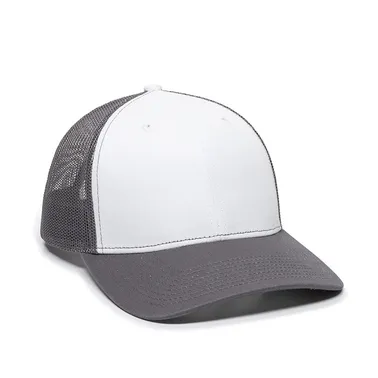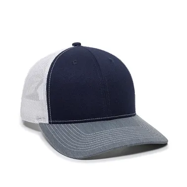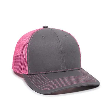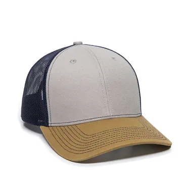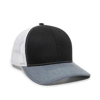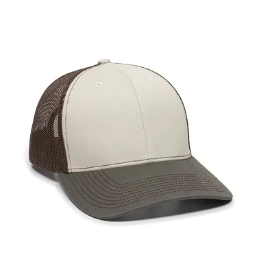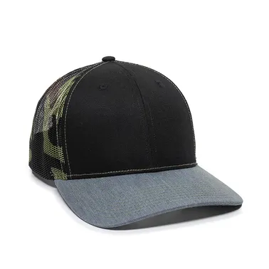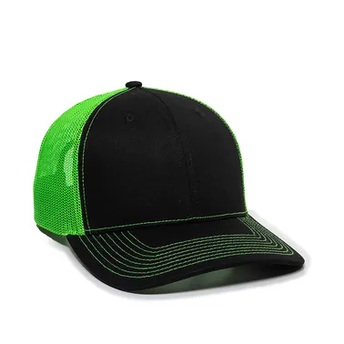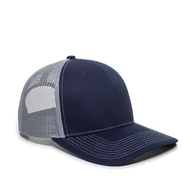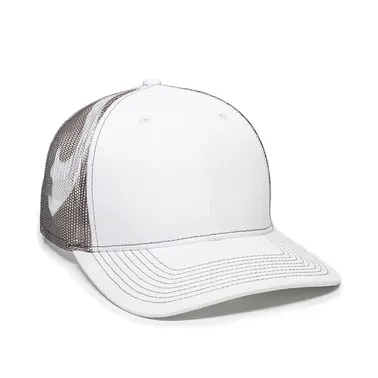 "The all-new OC771 Premium Modern Trucker Cap raises the bar in consistency, fit, and finish. Premium Modern Trucker Cap is perfect for today's demanding clients and emerging brands, the OC771 Premium Modern Trucker Cap features unrivaled comfort & fit, a modern trucker shape, comfort wrapped sweatband, and contrasting construction stitch in a wide variety of 60 unique and popular colors. Pro Round Crown Mesh Back Panels Chino Twill Front Panels Structured Woven Loop Label Slight Pre-Curve Plastic Snap Fiber content varies by color.