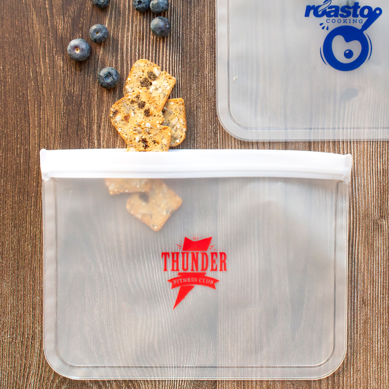 SlipZip Large Reusable Storage Bag, when you're wanting travel or storage convenience, but don't want to contribute to single use plastic waste. This silicone SlipZip Large Reusable Storage Bag is the eco-friendly, non-chlorinated and odorless solution. SlipZip Large Reusable Storage Bag is perfect for sandwiches, fruits, veggies and other snacks, but also ideal for stationery organization like elastics and paper clips, or as a toiletry bag. Complies with Prop 65. 10 1/4" W x 7 3/4" H
