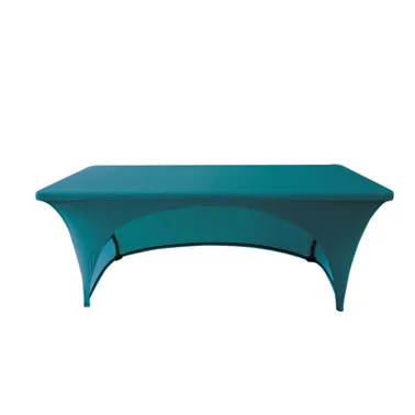 This modern update to the traditional table throw is sleek and eye-catching. The 8ft Stretch Table Cover cover fits snug to most 8' collapsible tables, perfect for a variety of tradeshows and events. The 8ft Stretch Table Cover is a fully customizable dye-sub graphic print. Canvas loops included securing the cover to each leg during install.