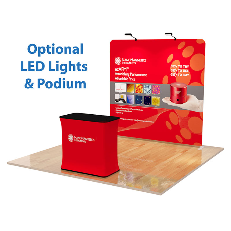 Our 8ft Straight Tension Fabric Display consist of a lightweight but durable aluminum hardware and a Fabric Dye-Sublimated Print. The hardware is inserted inside the print, much like a pillow into a pillowcase. The 8ft Straight Tension Fabric Display fabric print is stretched tight across the frame and zipped close.