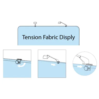 IMPORTANT: The tension fabric displays are meant to hold only two LED lights. The two C-clamps required to mount the LED lights to our tension fabric displays are included with every display hardware we ship. LED lights do not ship with additional C-Clamps.