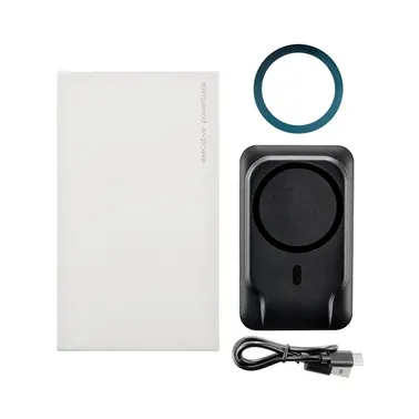 The ultimate charging solution for your mobile devices! An impressive 10,000 mAh capacity, this power bank ensures you stay powered up all day long. Equipped with 15-watt wireless charging, fast charging USB and Type C ports, and cutting-edge magnetic MagSafe Technology, it provides lightning-fast charging for your devices. The built-in magnetic kickstand allows you to prop up your phone for convenient viewing, while the digital display keeps you informed about the remaining power. 1. Complies with CE, FCC, Prop 65, RoHS. 4 3/8" H x 2 11/16" W x 3/4" D