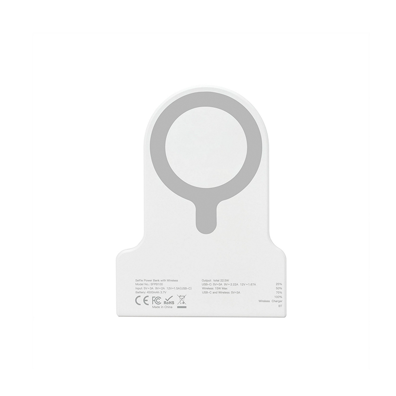 Enhance your smartphone photography with ShutterVolt, featuring an ergonomic grip, built-in Bluetooth shutter button, and a 4,500mAh MagSafe wireless power bank for seamless, on-the-go shooting. Easily switch between landscape and portrait modes, enjoy hands-free docking, and attach effortlessly with its magnetic mount compatible with MagSafe cases.Key Features:Battery Capacity: 4,500 mAhWireless: 15W maxType-C (In): 5V/ 3A, 9V/ 2A, 12V/ 1.5A (18W max)Type-C (Out): 22.5 W max Bluetooth Shutter Button ConnectivityLight-Up ring light. Complies with UN38.3. 3.5" H x 4.8125" W x 1.25" D