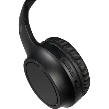 The Rewired Recycled Bluetooth Headphones deliver an immersive audio experience with premium stereo sound and up to 40 hours of playback at maximum volume. Made from recycled plastic, these eco-conscious headphones provide both comfort and quality, with extra plush earpads to keep you comfortable on long flights, train rides, or workdays. Built-in music controls and a microphone allow you to manage audio, activate your voice assistant, and answer calls—all without reaching for your phone. Design. 7.10" D x 1.10" W x 3.00" H